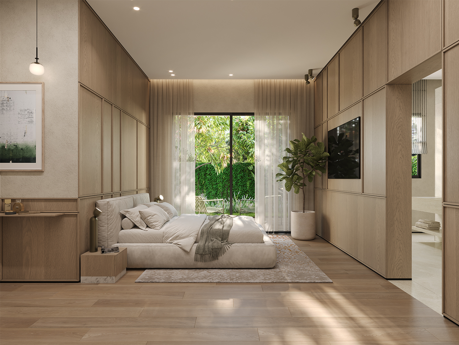 • ריצוף חדרי שינה וחלל מגורים באריחי גרניט פורצלן